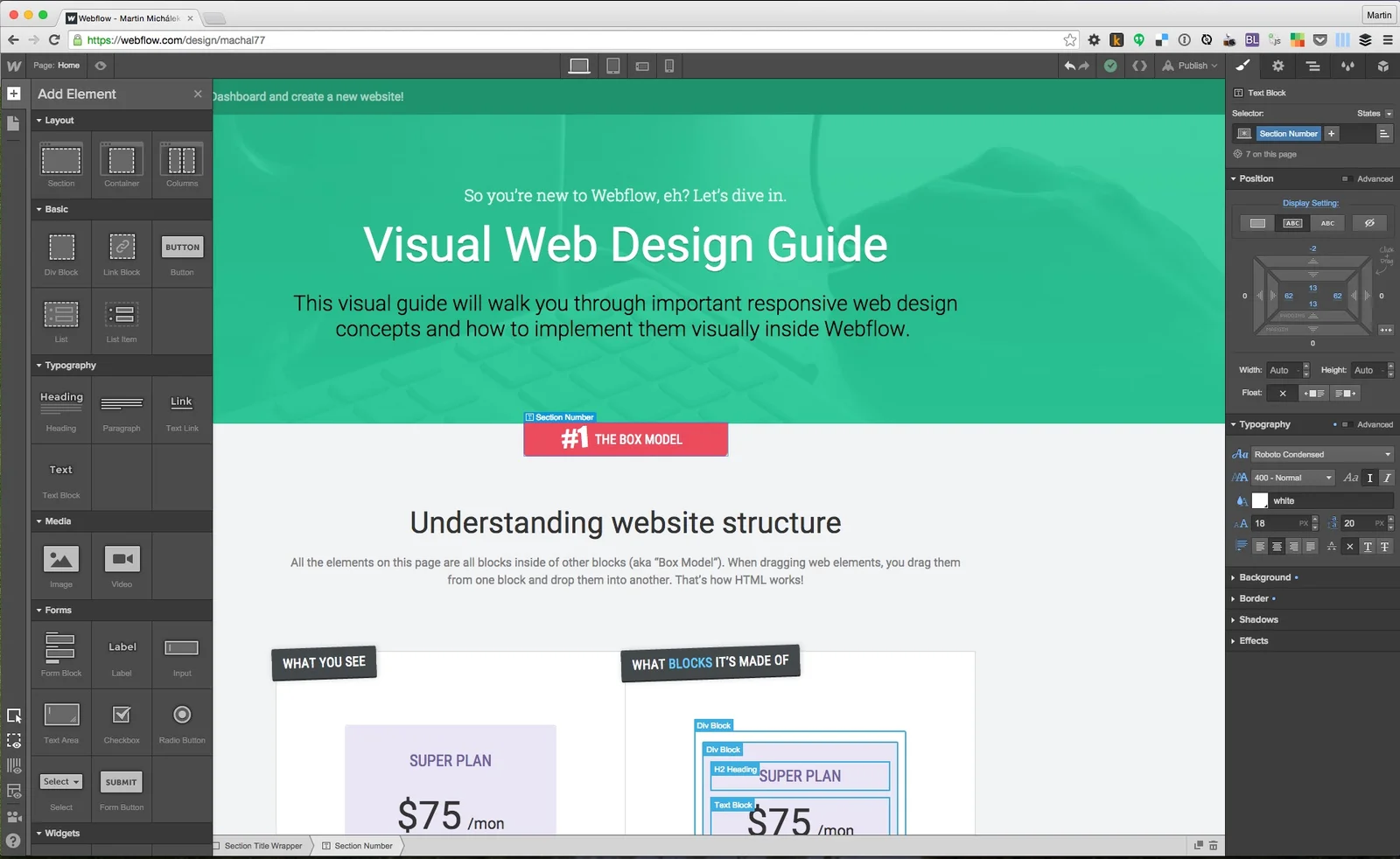 Na WebFlow se mi velmi líbí důraz na jednoduchou znovupoužitelnost a respektování webových principů. Elementům se přidávají třídy, které mají styly odpovídající 1:1 aktuálním možnostem CSSka. Včetně CSS3 animací nebo transformací. Komponenty jež opakujete napříč stránkami si uložíte jako Symboly a upravujete jen na jednom místě. Vida, i klikačská obdoba <?php include() ?> se sem dostala!