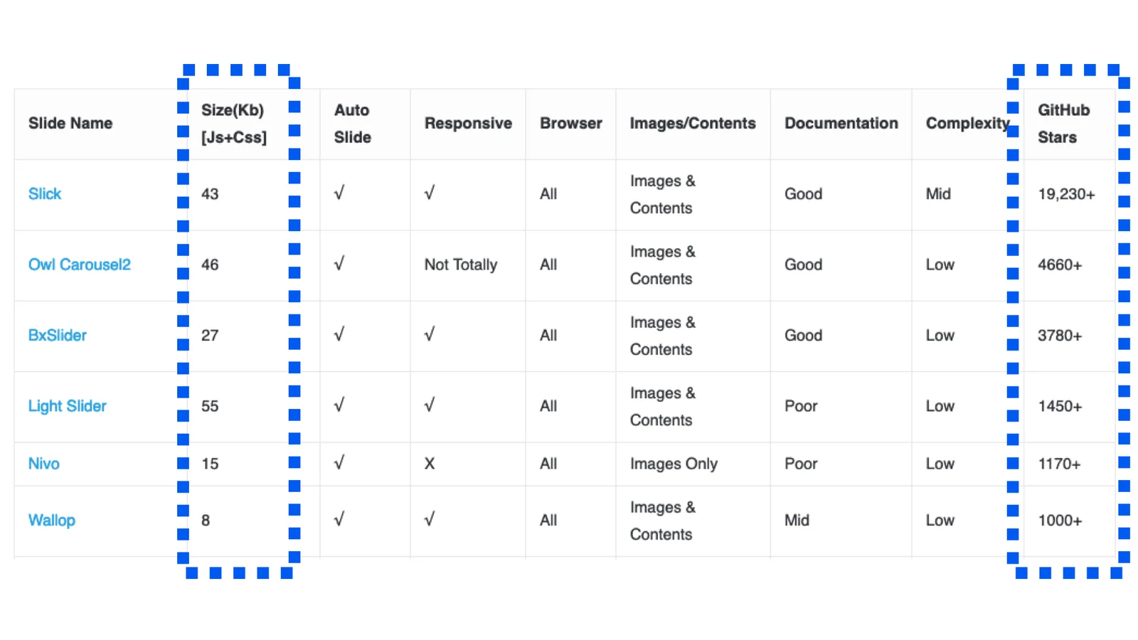 Velikost populárních knihoven má svůj důvod. Vývojáři obvykle pracují na několika různých webech, které mají různé požadavky na ztvárnění karuselu. Někde klient potřebuje zvláštní verzi obrázku pro mobily, někde navigaci po obrázcích, někde zase něco jiného.