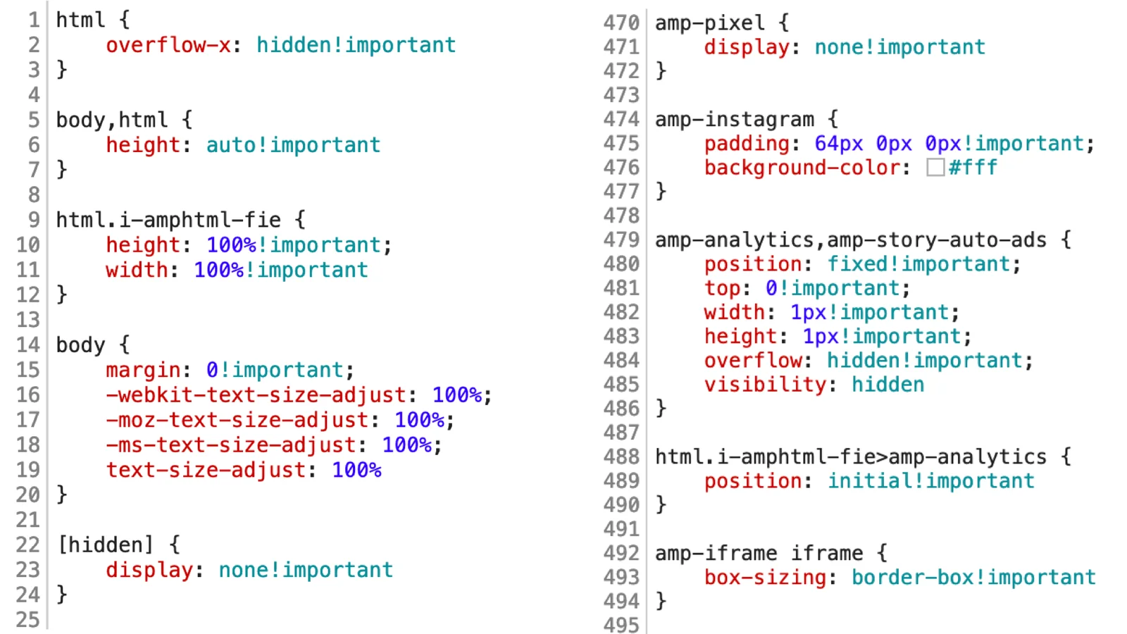 Světový rekord v počtu klíčových slov !important právě padl ve výchozích stylech pro Google AMP Viewer.