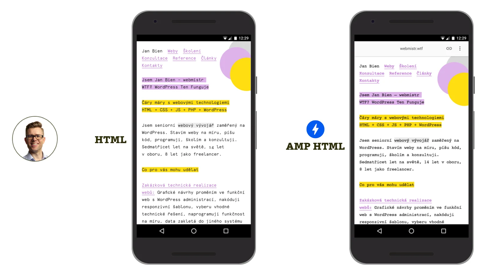 Výsledek Honzova křížení AMP s WordPressem je moc fajn. webmistr.wtf