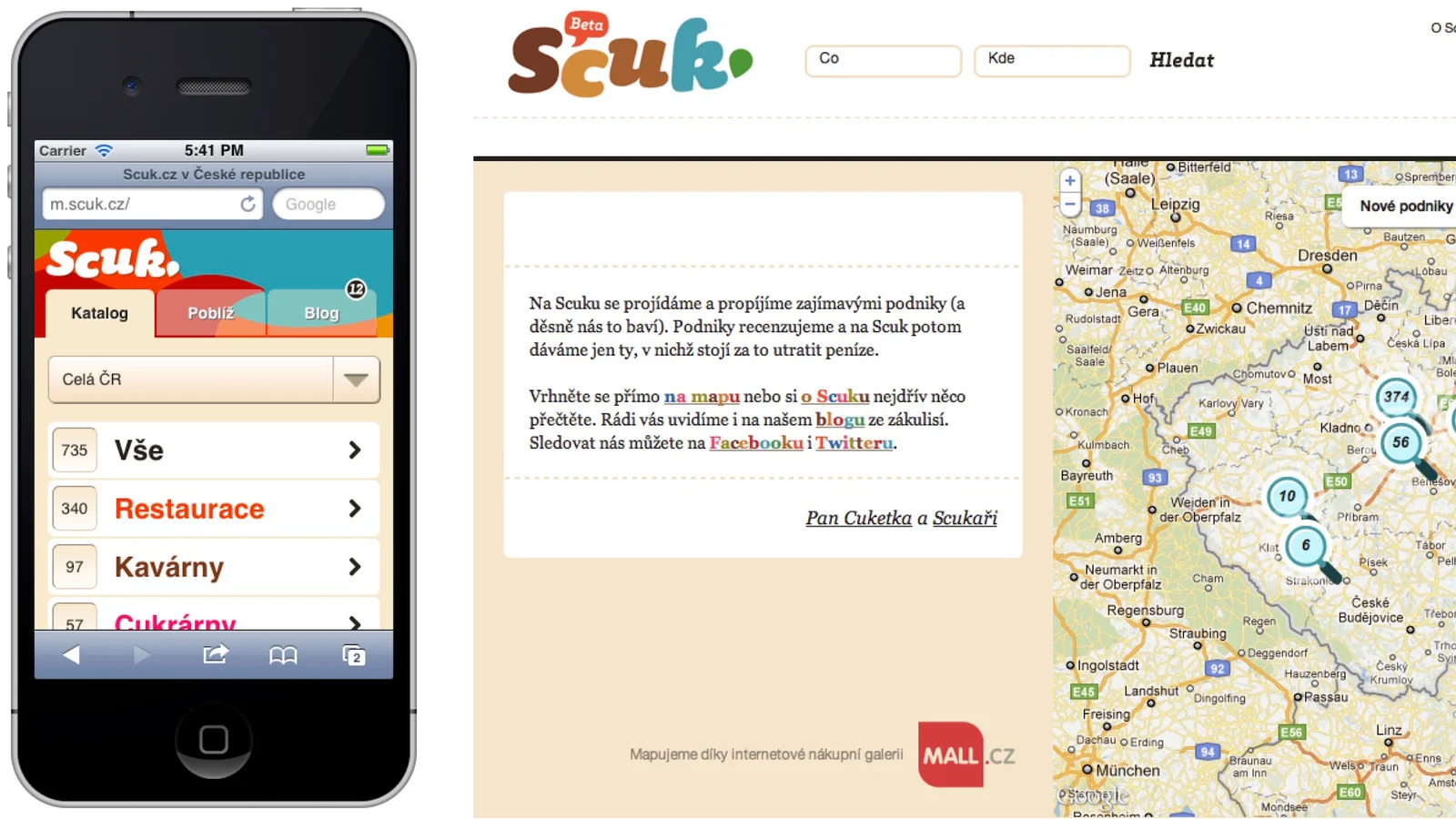 Dnes už je Scuk responzivní, ale v roce 2010 ještě mobily nebyly v Česku tak důležité. Proto jsme, jako všichni v té době, vyrobili jen desktopovou verzi. Pár let po spuštění ovšem v naší cílové skupině podíl mobilních uživatelů vzrostl. Responzivní web jsem tehdy udělat uměl, takže jsme se bavili o jakémsi „zresponzivnění“ desktopového webu. Nakonec jsme to ale zavrhli.