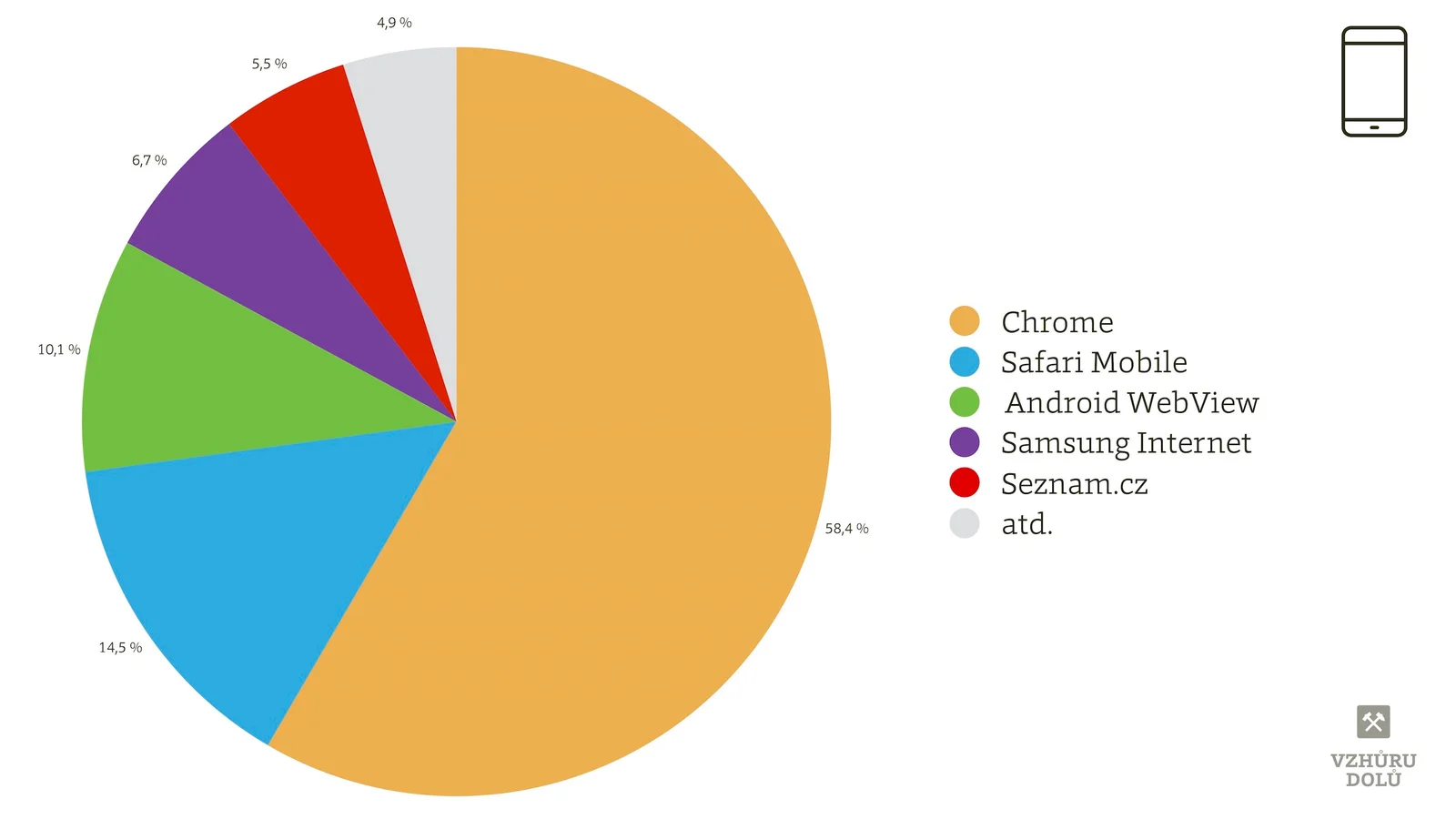 Když sečteme všechny prohlížeče postavená na jádru Chromu („Chromium“), kromě Safari nemá v ČR na mobilních zařízení žádnou konkurenci. Ostatně ani na světe ne.