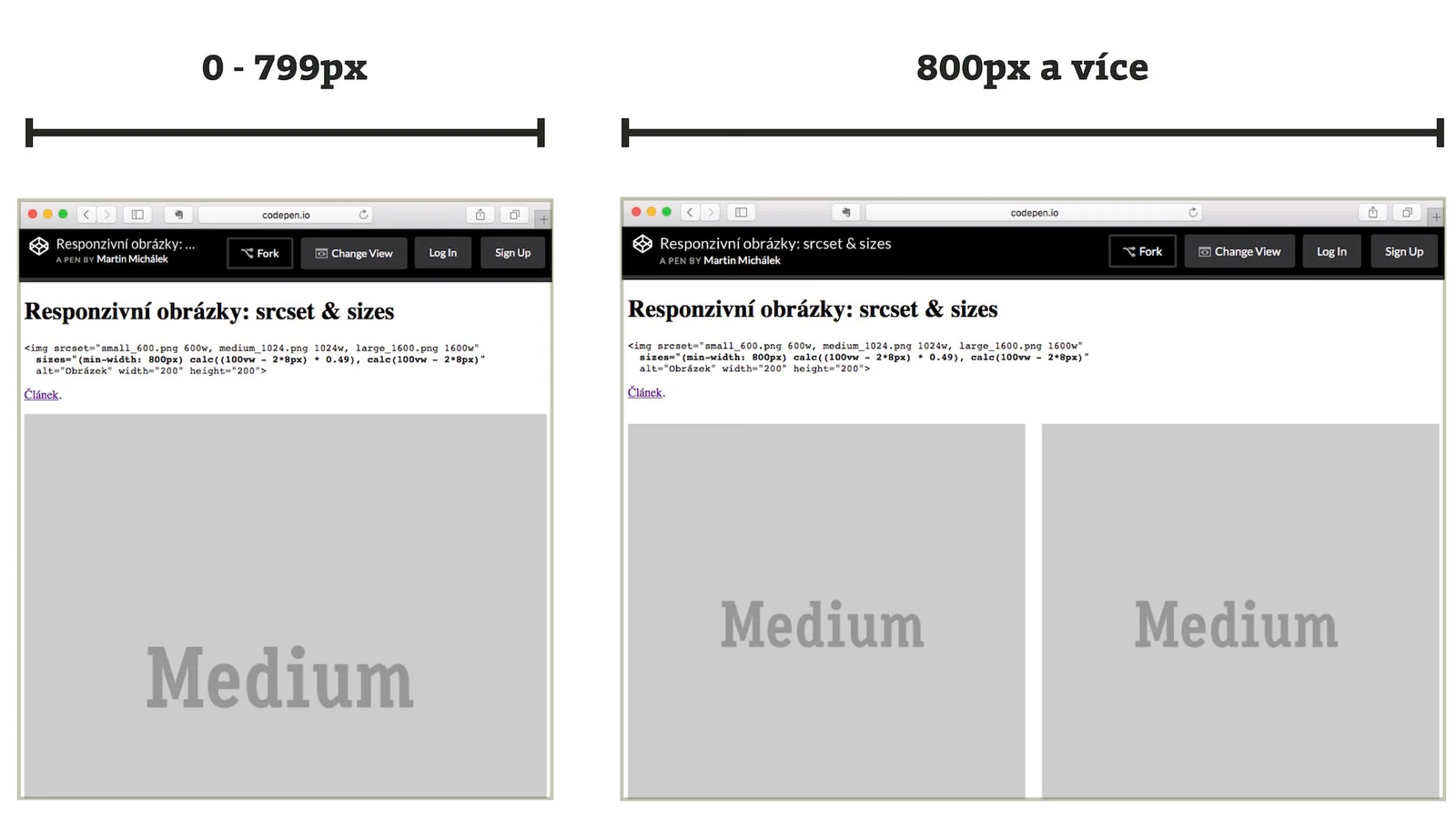 Pojďme se teď ještě podívat na atribut sizes, který prohlížeči umožní vybírat nejen podle fyzických parametrů souborů s obrázky, ale i podle layoutu vaší stránky.