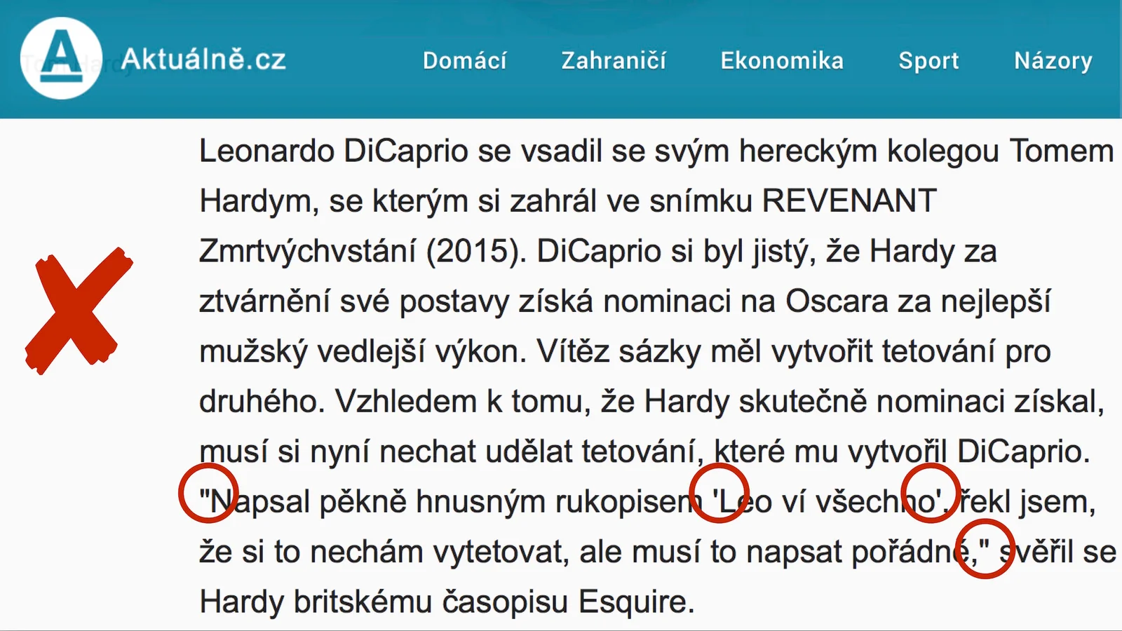 Aktuálně.cz používá nesprávné znaky